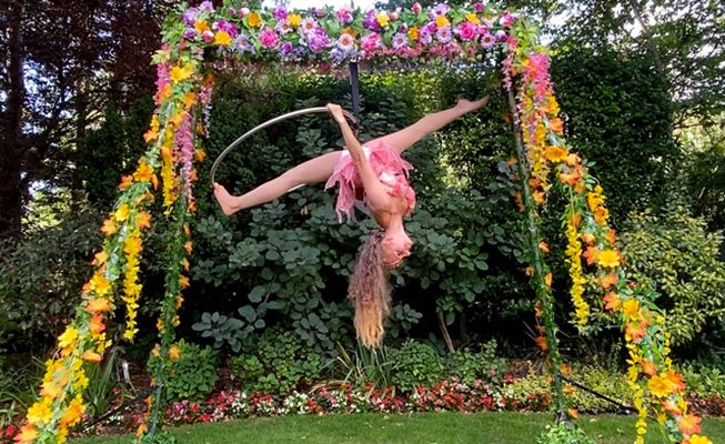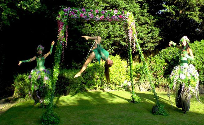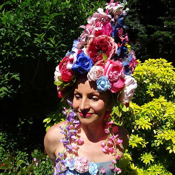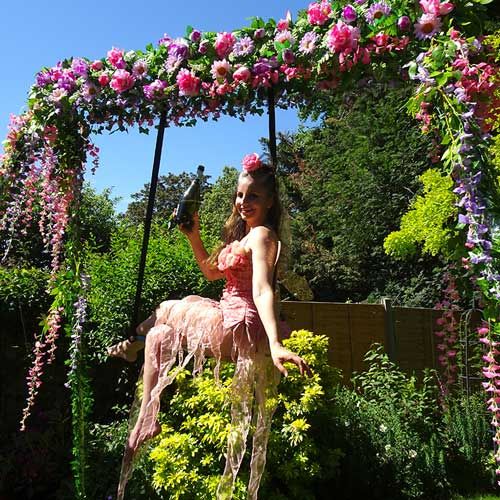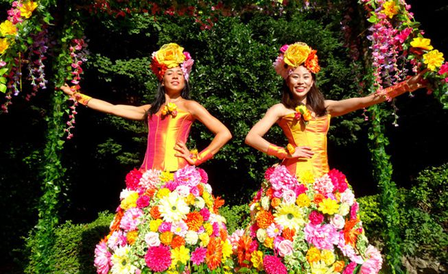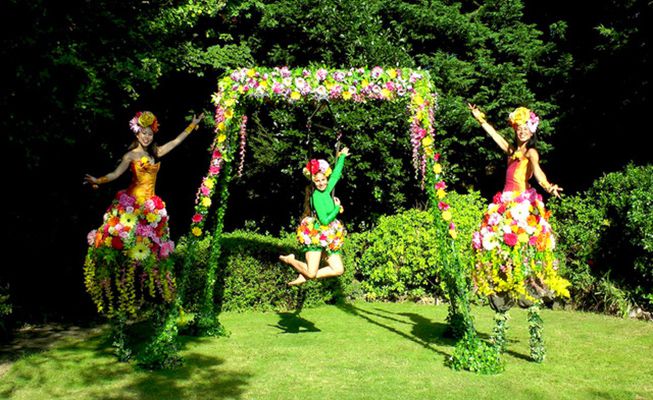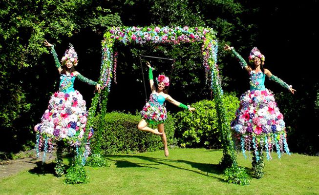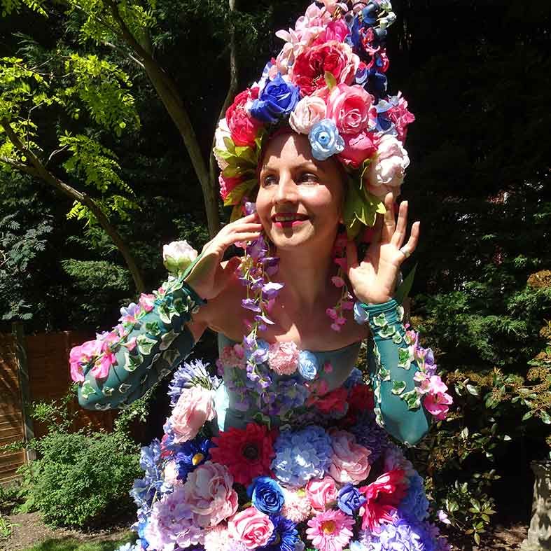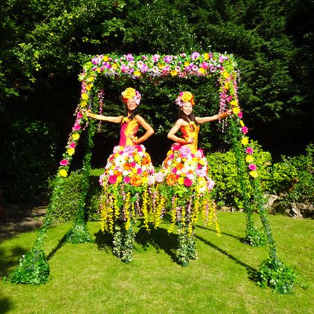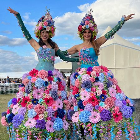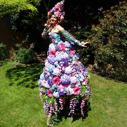 This amazing roaming stilt walker is dressed in a stunning summer floral costume that will captivate everyone who sees her; she's available for photos.