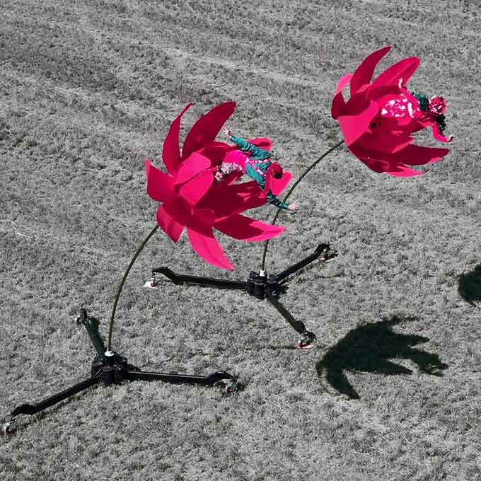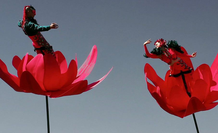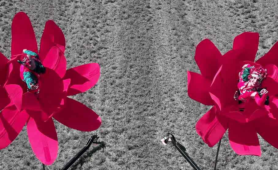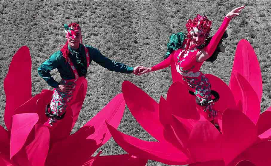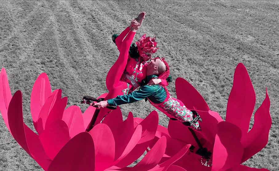 Our duo combines theater, dance, and circus styles, utilizing their one-of-a-kind flower sway-poles, perfect for street festivals and outdoor theaters.
