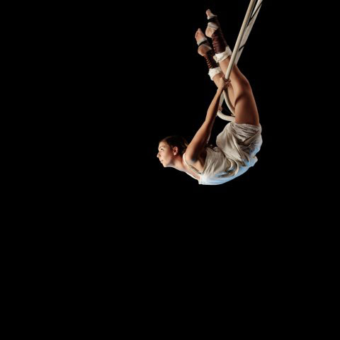 The aerial acts she has developed since earning her degree quickly caught the attention of professional companies. Her stunning silhouettes captivate audiences, leaving them mesmerized by her skill and talent.