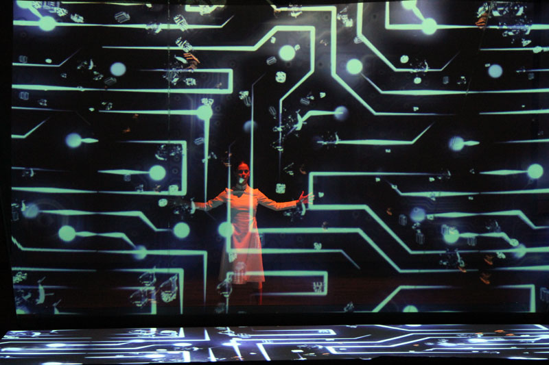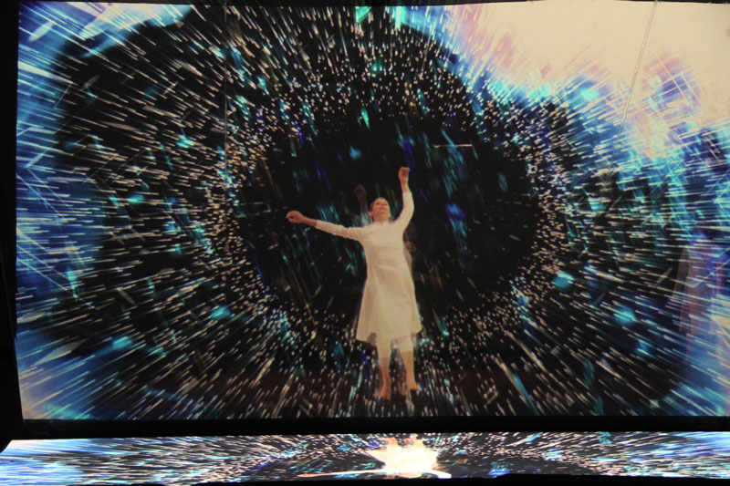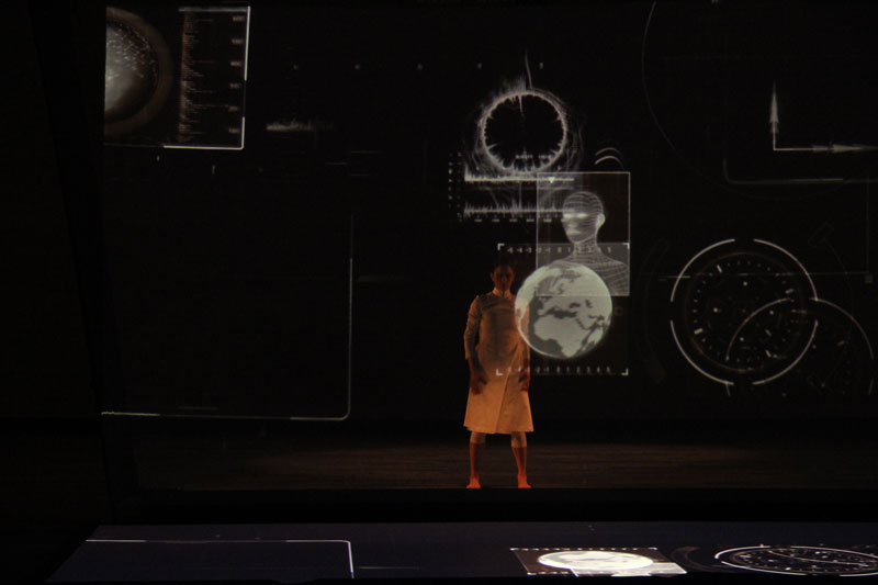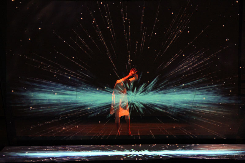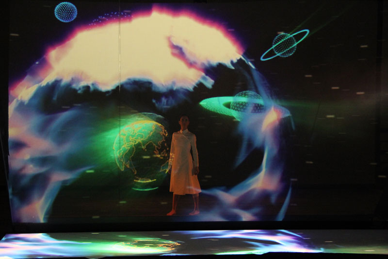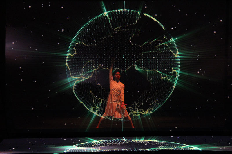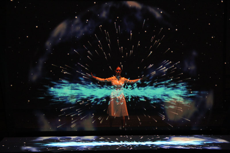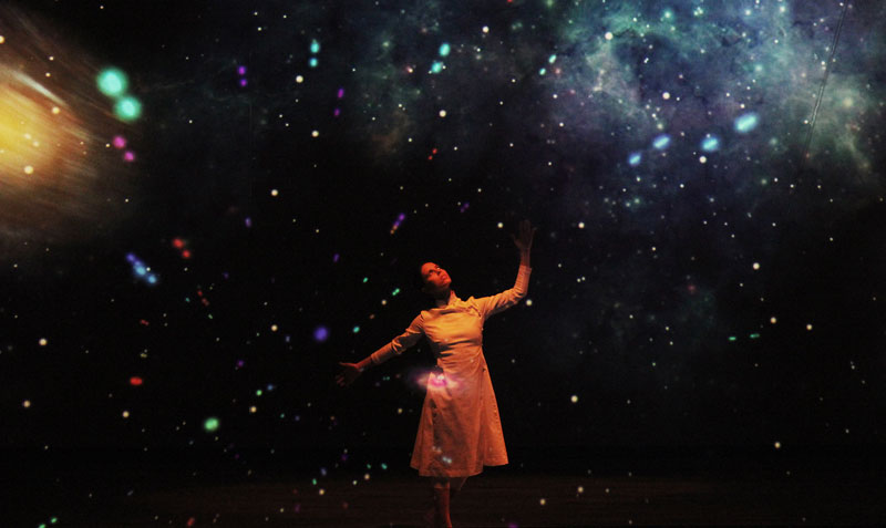 Perfectly synchronized with the music and projections, a dancer will take viewers on a journey through the universe. Using body language and video mapping images, the performer will invite the audience to explore the galaxy with her and reflect on the universe's size, immensity, and secrets.