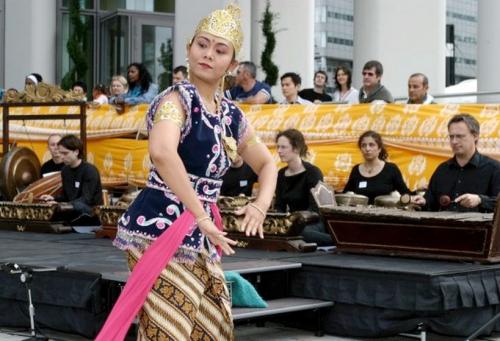 The gamelan ensemble primarily features bronze or brass instruments including gongs, gong kettles, metallophones, as well as xylophones, drums, fiddles, and flutes. With an intrinsic beauty, the music combines simple elements to create intricate textures that are a feast for the ears.
