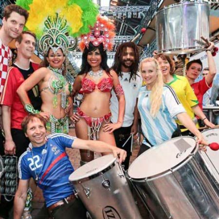 Energize your event with a colorful, high-energy display and bold, in-your-face drumming procession from the amazing German Samba drummers. If you're looking for passionate, fun, and lively carnival-entertainment-style live music, the Samba band should be your top choice.