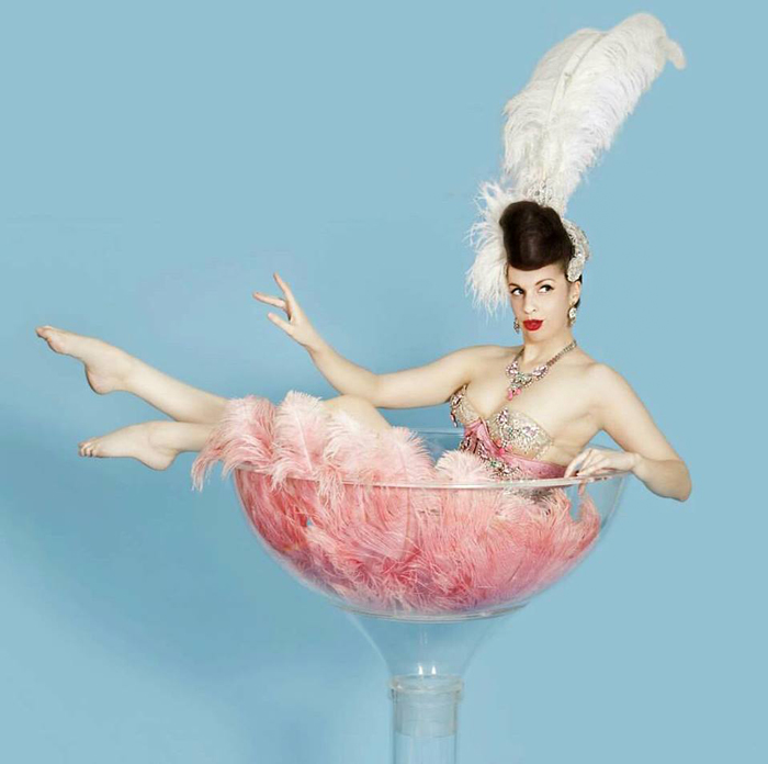 The Martini glass show is an incredible, jaw-dropping centerpiece suitable for any event. With or without a traditional striptease, the Martini glass show highlights the burlesque artist's classic fan dancing with a stunning bath-time finale that often includes a glass full of glitter. It also features a meet-and-greet photo opportunity with the gorgeous pin-up model.
