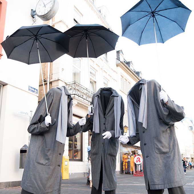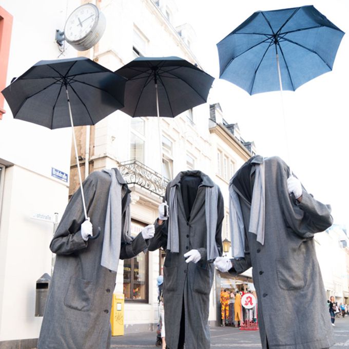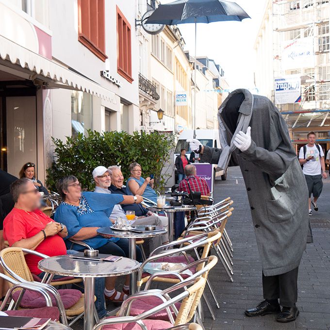 A popular mix and mingle entertainment option, our headless walkabout men are an unmatched attention-grabber. Perfect for a variety of events, this act is ideal for shopping malls, trade fairs, street celebrations, festivals, themed parties, dinners, and many more!