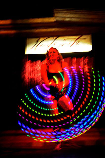 Ultra-bright lights and high energy! The artists perform with the highest quality LED hoops on the market and offer engaging freestyle and choreographed hoop dance performances. Glow hoops are perfect for clubs, live bands and nighttime events, as they look best in the dark.