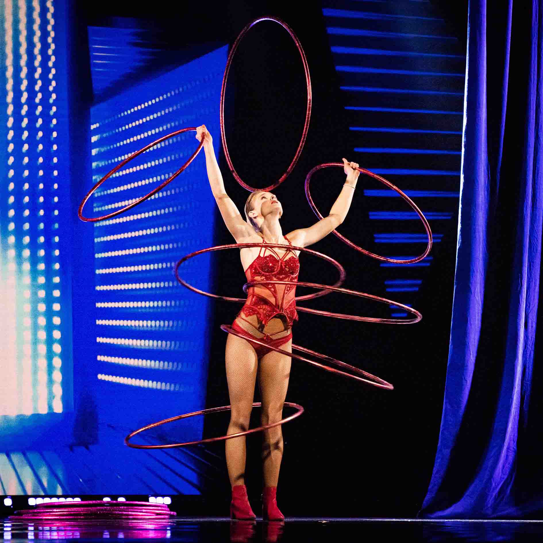 Dazzling crowds from Australia to Germany, our incredible hula hoop artist adds glamour and excitement to every event.