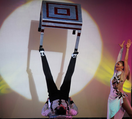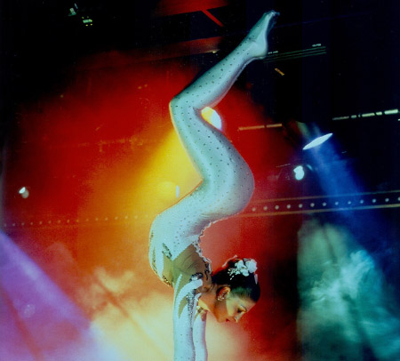 -Handstand: an elegant acrobatic show demonstrating incredible skill and balance.