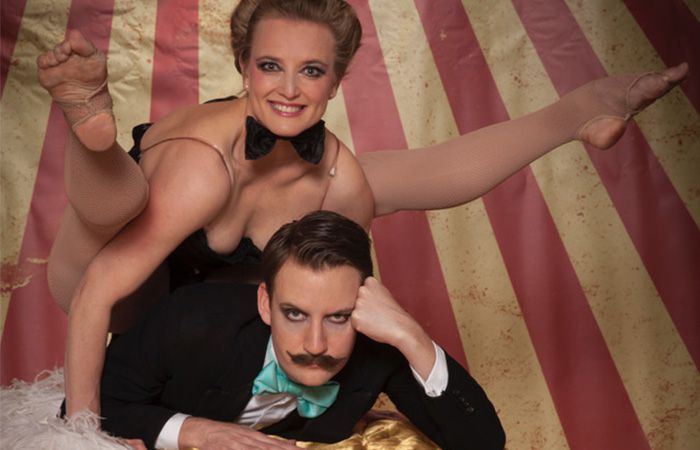 If the giant top hat stage doesn't quite fit your style, our duo can perform on your indoor stage or performance area with a show to blow your guests away. This can feature their hilarious flying table scene, comedy contortion ballet, and a jaw-dropping escape from a trunk with a quick-change routine.