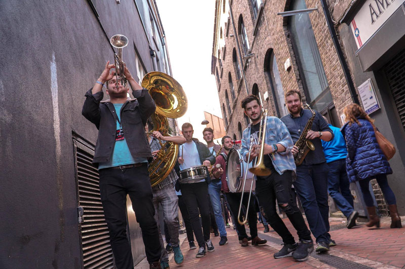 This bold and funky ten-piece band from Leeds includes trumpets, saxophones, trombones, sousaphone, and drums. As a truly global act, this live music group consistently delivers vibrant and spirited performances. The immersive brass party band guarantees a toe-tapping good time for all guests and is fantastic as a roaming act.