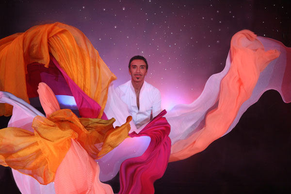 His stage show blends high-energy music, tight choreography, and a touch of comedy with his incredible design skills to create a high-end fashion spectacle that will entertain and delight audiences of all ages. During the performance, he'll craft a variety of fashion pieces from regular fabric or even from clothing already being worn. He can turn his tie, pants, sleeves, and trench coat into a beautiful evening dress—anything is possible!