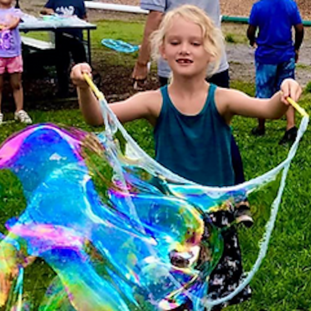 This bubble show combines giant bubbles, bubble wands, and interactive elements to entertain children and adults at family-friendly events