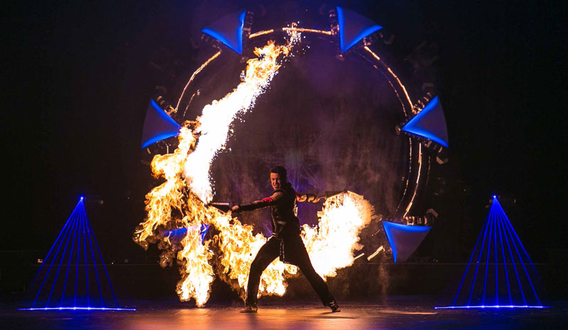 Best described as a mix of dance, martial arts, movement disciplines, acrobatics, gymnastics, and expert fire techniques, their fire shows are enhanced with classy costumes, stunning stage decor, and fully choreographed pyrotechnics, along with top-notch backstage safety and professionalism. This international fire & pyro show is unmatched in the world of fire-dance entertainment and features many unique and exclusive fire, gas, and pyrotechnic effects.