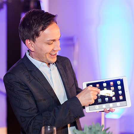 Fresh and modern iPad Magician showcases mind-blowing digital magic both on stage and among the crowd with captivating interactions
