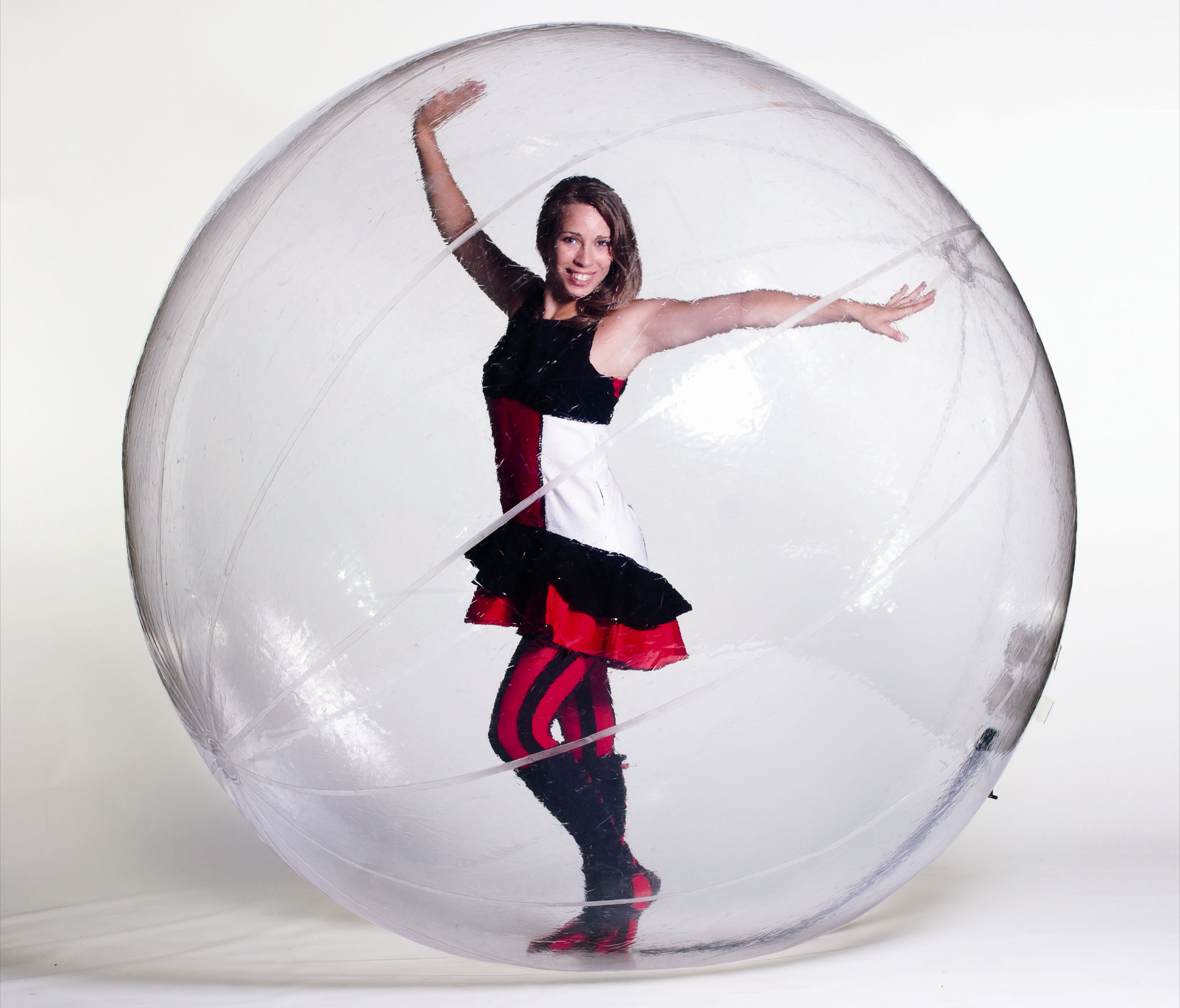For Laura, a typical performance includes juggling flaming chainsaws, soaring high in the air with colorful fabrics, and dancing inside her favorite human-sized hamster ball.