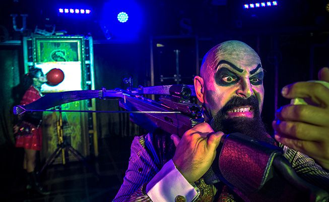 Throwing knives, axes, and spears, our twisted cirque star specializes in a rare and unusual form of artistic expression; a unique traditional art form whose origins are lost in the mists of time...