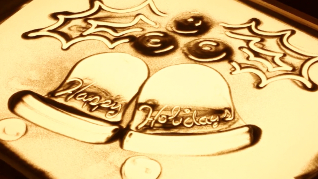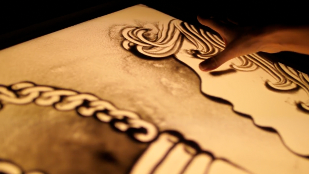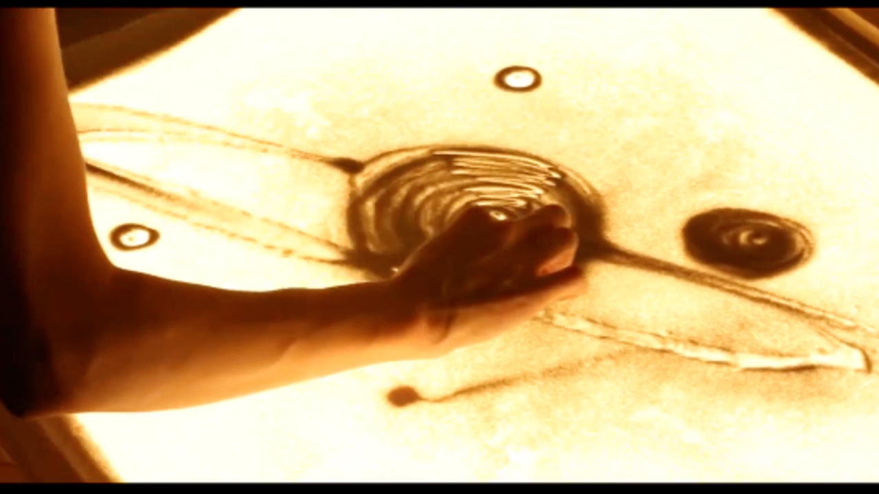 She crafts captivating visuals by using her hands and fingers to shape sand into dynamic images.