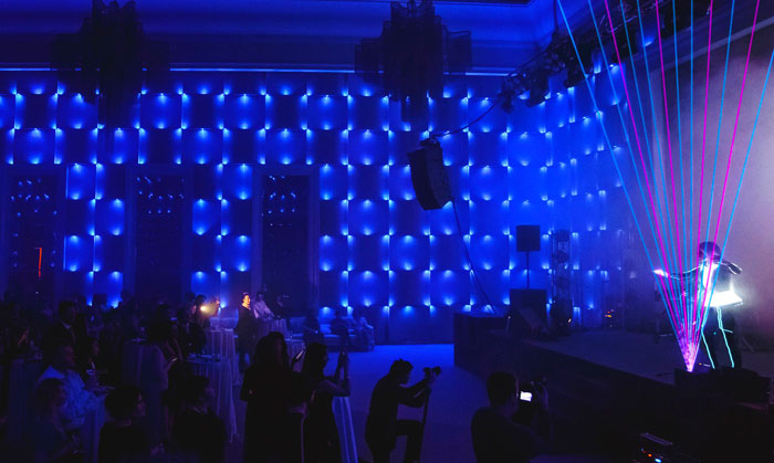 This futuristic live music experience is perfect for amazing your guests with something they've never seen before. The part-electronic, part-operatic live music show is enhanced by stunning light visuals. The opera singer wears a breathtaking futuristic illuminated costume, and the laser beams of the harp have no limits. The laser harp beams can stretch into the sky or be mirrored across the venue. The show can also include stunning visuals projected across the stage.