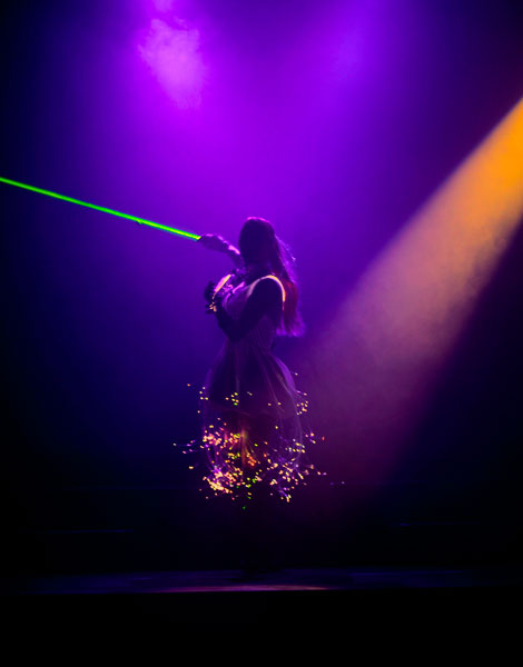 Combining sleek violin playing with an impressive laser display, Angie will definitely add the wow factor to your event. Performing on a glass podium lit with blue and green lasers, Angie captivates the audience as she plays her versatile repertoire of film music. She adds drama to the spectacle with a choreographed dance routine.