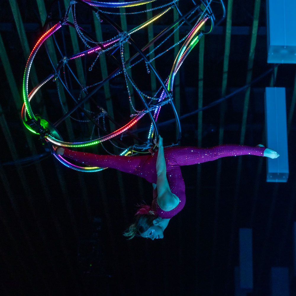 Watch as our aerial performers illuminate the night with brilliant, LED lights while showcasing their skill and grace high above the ground