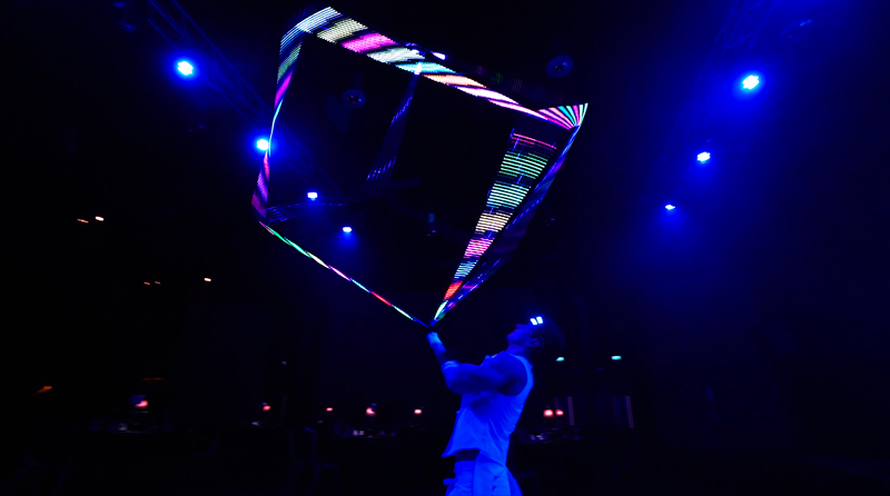 This athletic and vibrant LED cube act features glamorous dancers and gymnasts in stunning LED costumes, making an impressive sight against a darkened background. Their electrifying performance includes high-energy dance moves, a dazzling laser show, and an incredible cube-spinning routine. Our talented performer will spin the glowing cube frame around his body in an impressive display of strength and dexterity, while magnificent lasers fire from the edges of the cube, creating stunning lines of light in all directions. No other LED show combines this level of gymnastic ability with the latest LED and laser technology to create a show that’s modern, edgy, and sure to be a hit at any event.