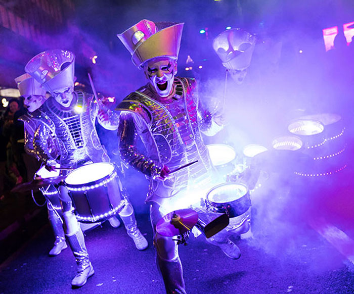 This medium-scale, site-specific show by The LED Drummers is designed to adapt to various settings like streets, town squares, parks, stages, and indoor spaces. They make an impressive addition to any event, from carnival parades to corporate gatherings.