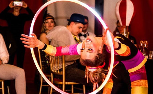 A unique option for mix and mingle events, her ambient LED hula hoop features a colour-changing hoop and skilful acrobatics