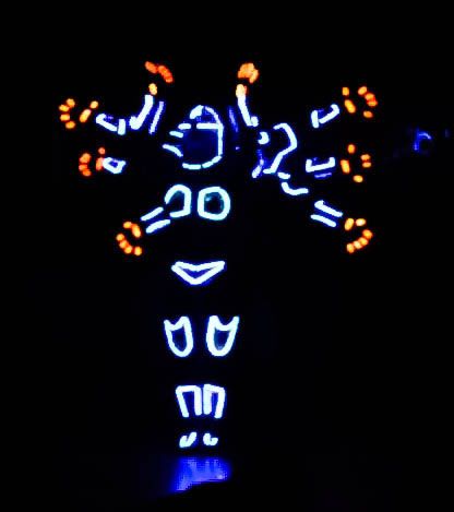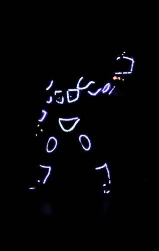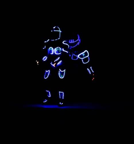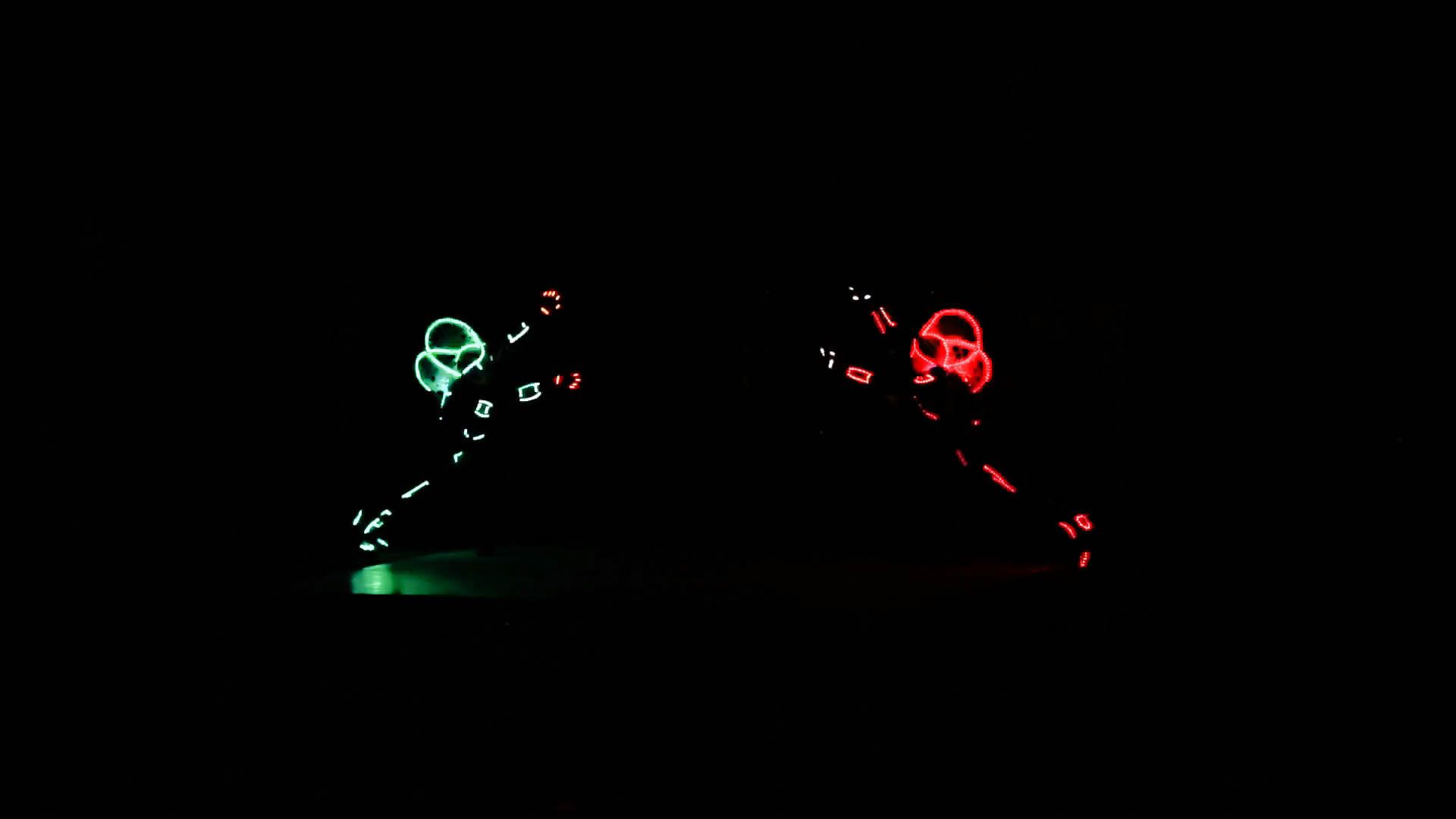The LED costumes light up and respond precisely to the music's light effects. Perfect for club events, product launches, and as a high-tech opener for a corporate show.