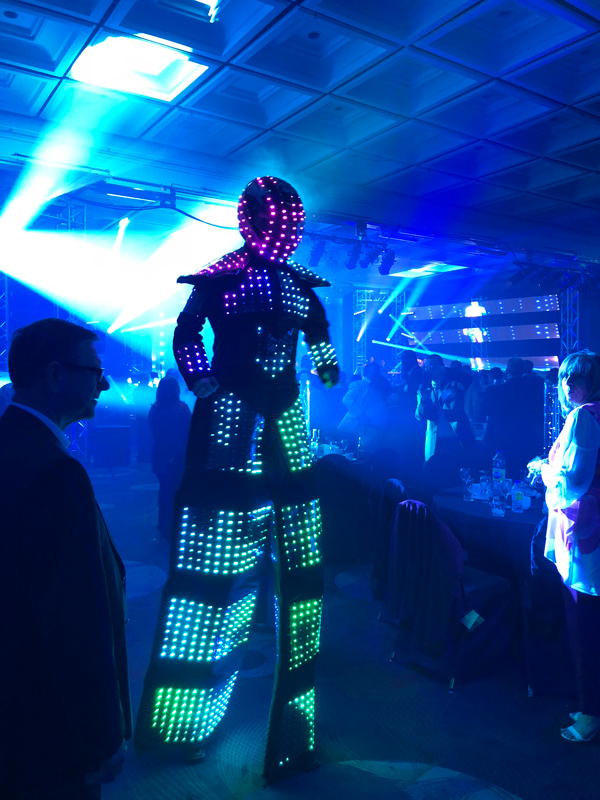 A fully interactive LED walkabout act, this robot stilt walker will amaze and entertain guests all night long. Especially perfect for dark settings, our robot stilt walker delivers a striking visual impact in complete darkness.
