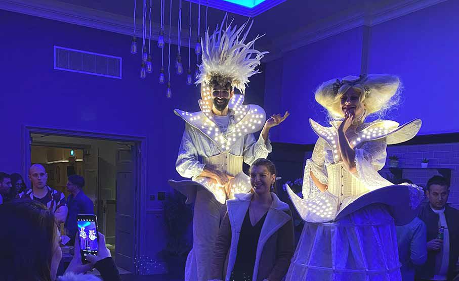 For magical Christmas-themed entertainment, why not book our LED Winter Stilt Walkers who will light up your event with a beautiful twinkling glow as they stride across your venue?