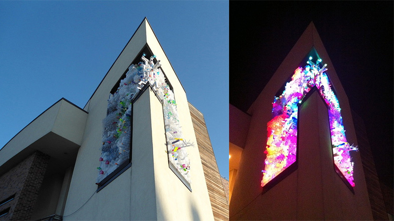 Light art projects are popular for a wide range of events such as light festivals, private parties, exhibitions, and more! They’re also perfect for decorating building facades, walls, small and large venues, etc. Our designer always welcomes the chance to be creative and come up with original ideas for new plastic bottle art pieces!