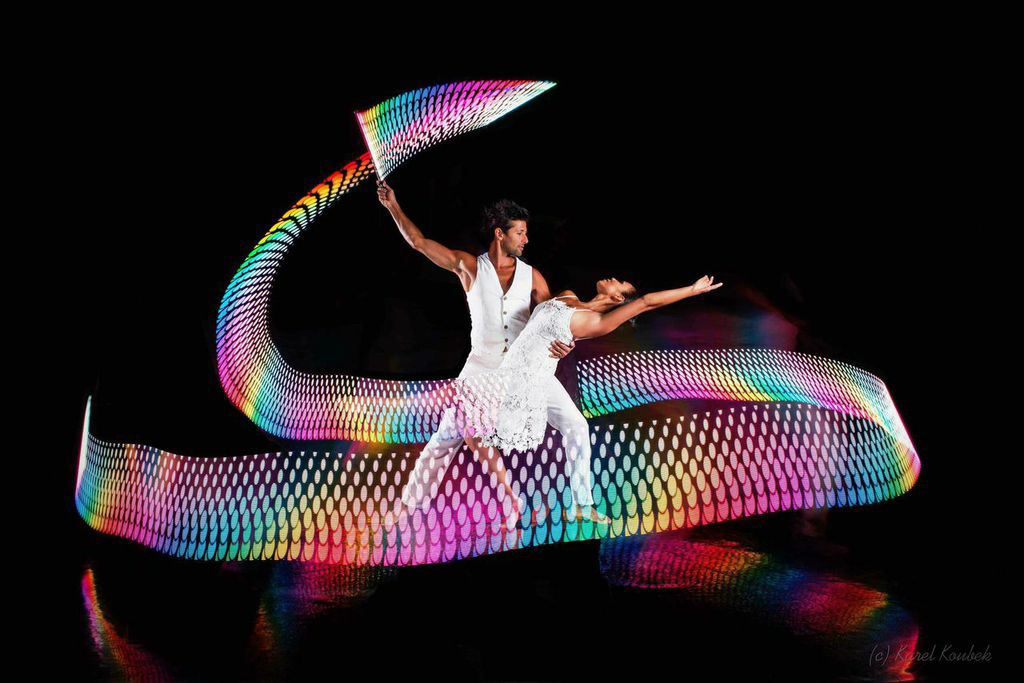 Light Dance Act has led the way in creating the LED Cyr Wheel. Equipped with various colors, modes, and patterns, the LED Cyr Wheel is an innovative and effective advancement in Light Dancing.