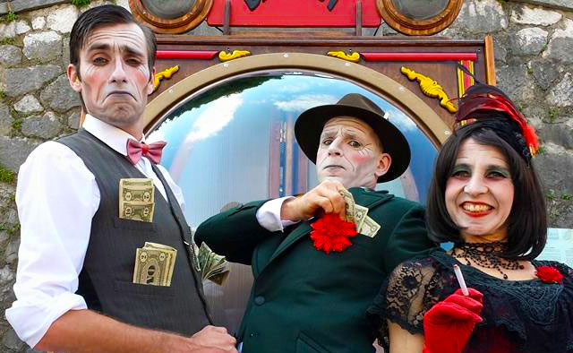 Using real fruit, unlike a traditional jackpot machine, the vintage characters place a variety of lemons, cherries, grapes, and four-leaf clovers into the cups. If the Living Jackpot Machine takes a liking to you, it'll give you three in a row, making you a jackpot winner. When this happens, one of the actors steps out from the back of the machine and showers you with confetti. The jackpot machine can give out actual prizes or anything specified by the client.
