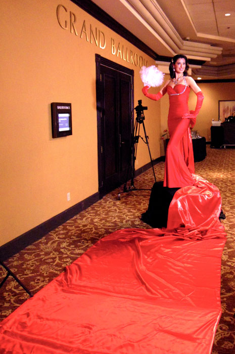 Give your guests the ultimate VIP entrance as our Living Red Carpet Hostess brings all the glamour of Hollywood and high-end elegance. Positioned on a podium, the luxury welcome act features a customized red dress that seamlessly blends into the red carpet. Able to stretch up to 50 feet long, the living red carpet is as much a part of the decor as it is a welcome act.