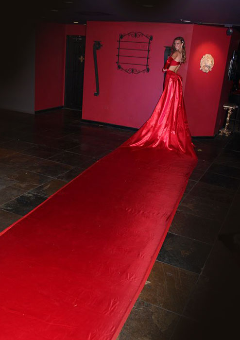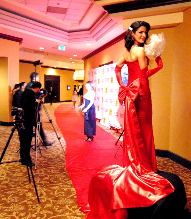 Based in California, this luxury welcome act can provide her extraordinary red carpet dress for events across America. If red doesn't match your color scheme, dresses are also available in blue, yellow, and white. Custom colors can be arranged with prior notice for a truly unique experience.