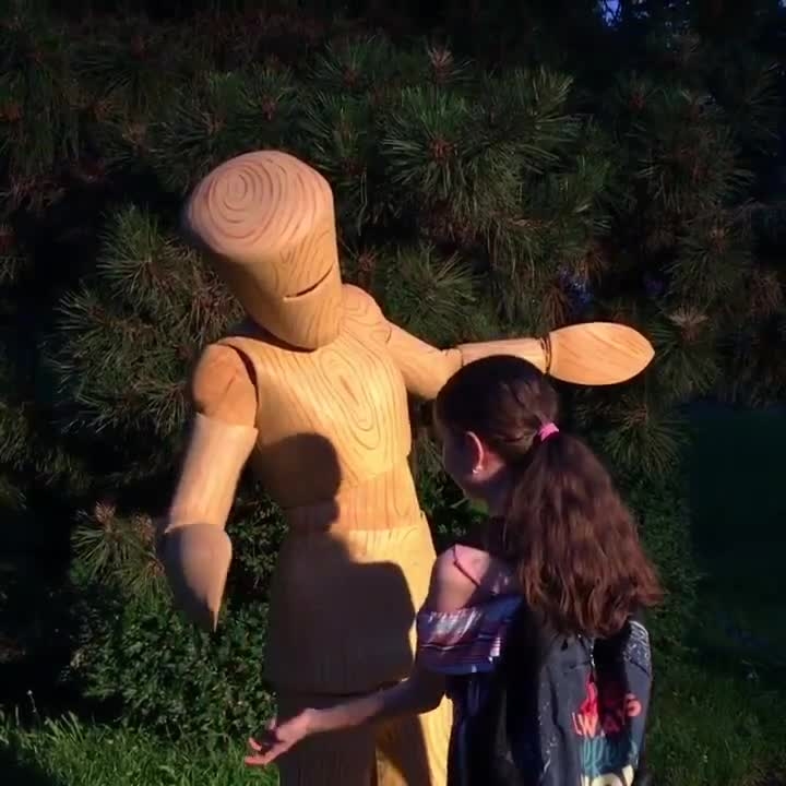 A delightful living statue experience with wooden figures coming to life