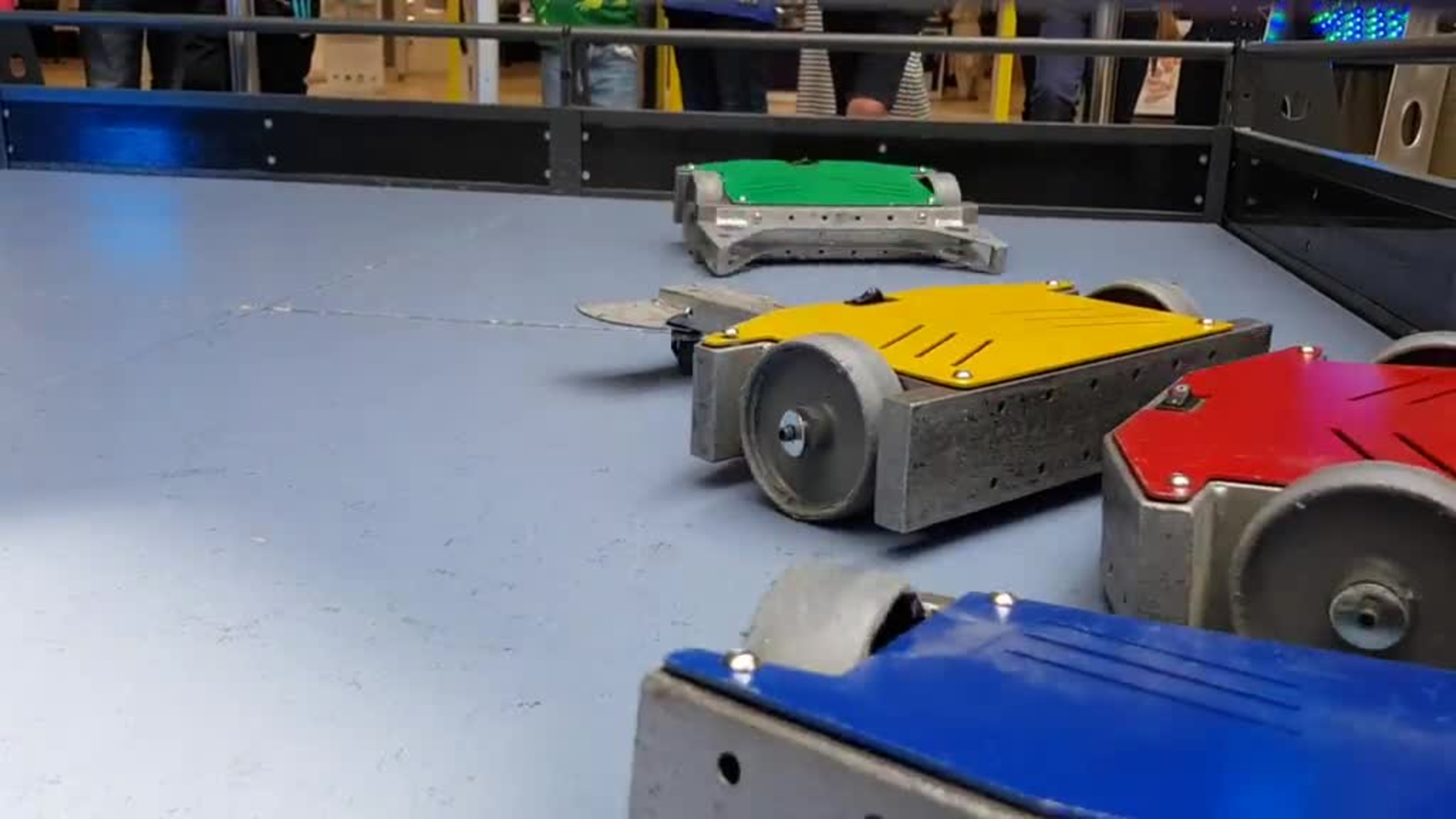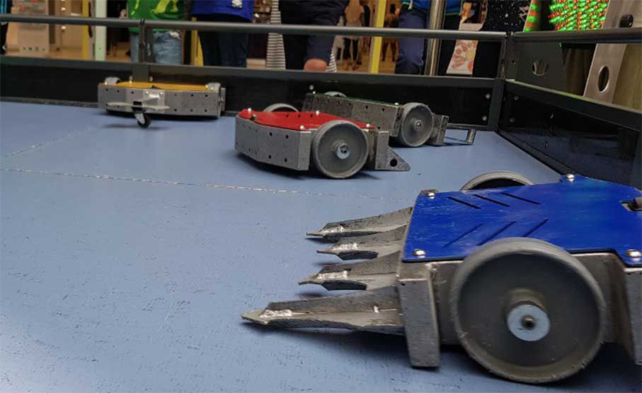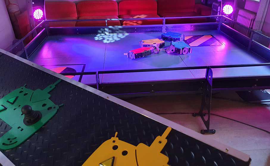 Guests use remote controls to drive and battle their robots around the arena, with the option to navigate obstacles along the way.