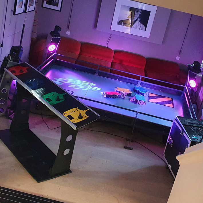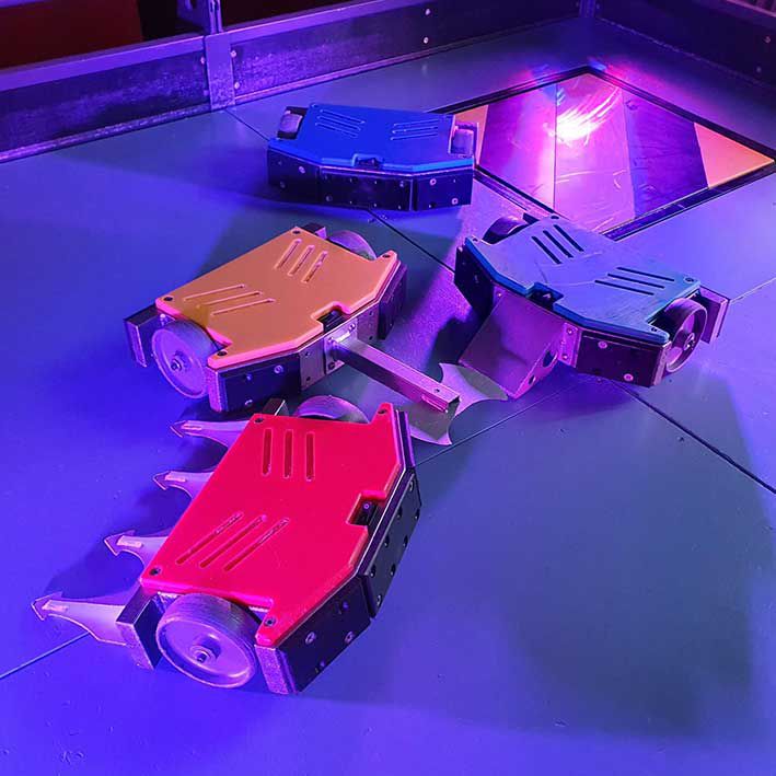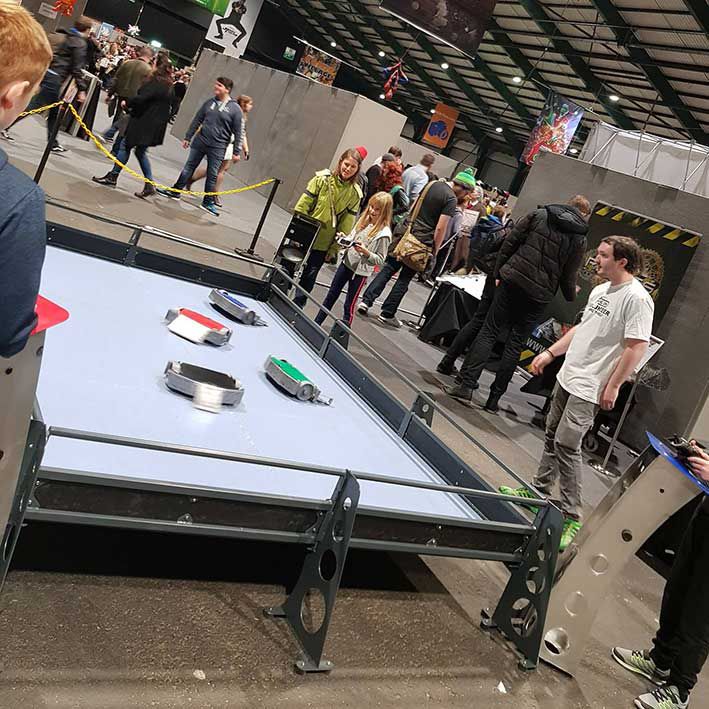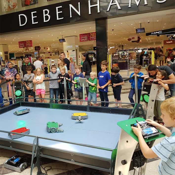 Perfect for malls and smaller venues, this interactive game lets contestants battle 5kg robots against one another.