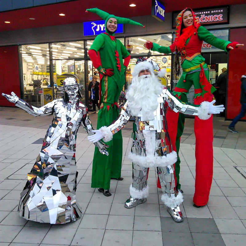 Book our Santa Claus along with other mirror characters or stilt-walking elves for even more fun!