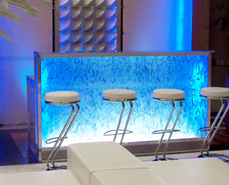 - Our unique mobile bar concept can be branded with your logo, with the front or acrylic glass top displaying your corporate design.