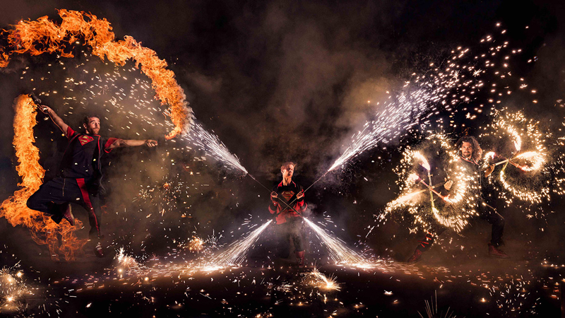An awe-inspiring fire show combining stunning choreography, music, and flames, sure to leave a lasting impression