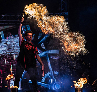 Pyro shows can be boosted with fireworks for a more striking visual effect. LED features can also be integrated into the performances.