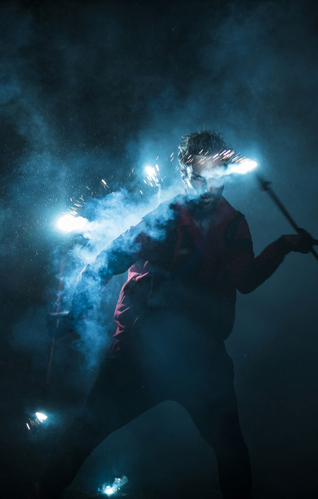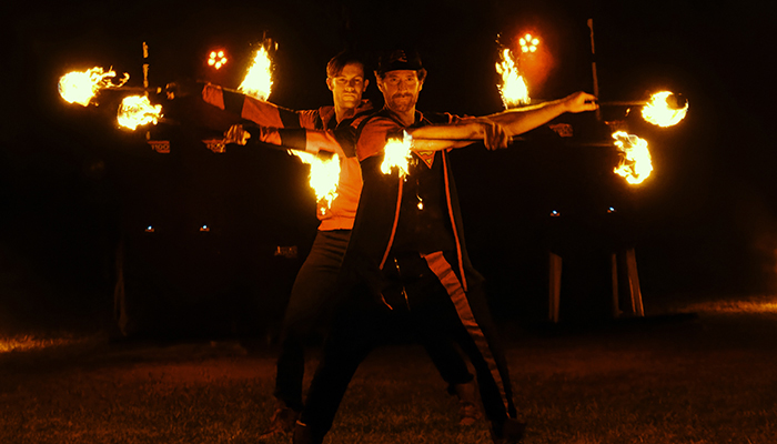 Performers utilize pyro poi, fire wands, and other props to create visually stunning fire effects. Book solo, duo, or trio performances.