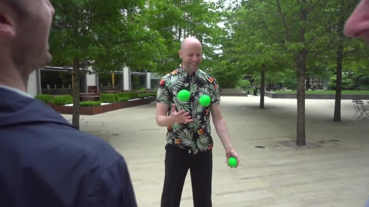 The modern roaming juggler will captivate your guests with sparkling conversation and incredible juggling tricks.