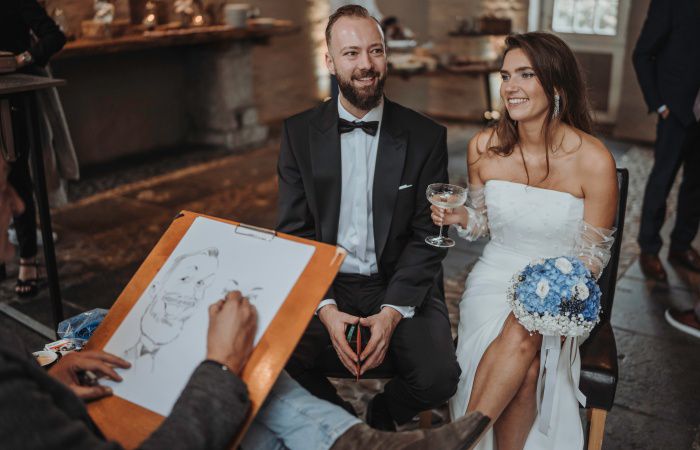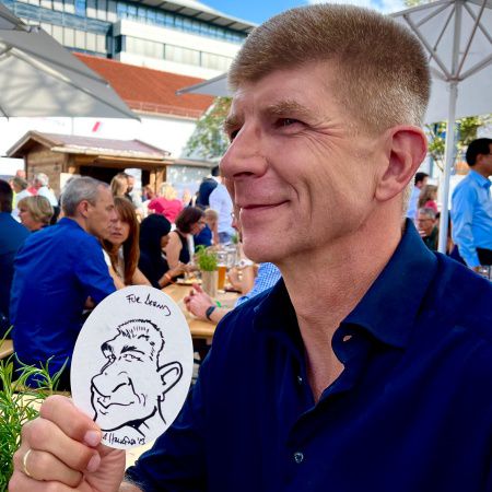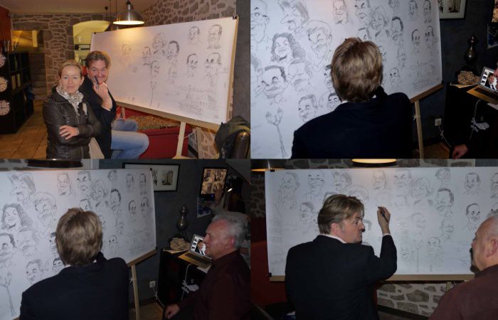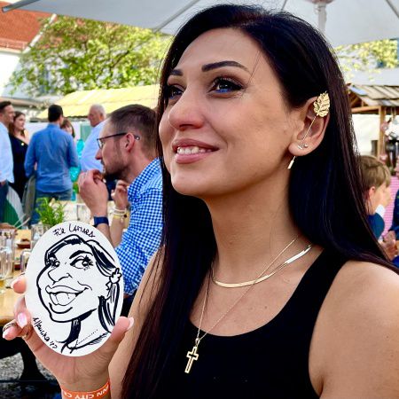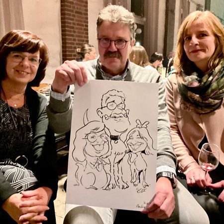 Our caricature artist creates individual and group caricatures on paper, as well as on unique materials like beer coasters, bags, and various size formats.