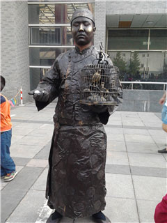 One of the most in-demand living statue groups in Mainland China, this act resonates with ancient times. Themed around 'Ancient Beijing,' these living statues transport guests back in time with authentic costumes, props, and expert body art that resembles tarnished bronze statues.