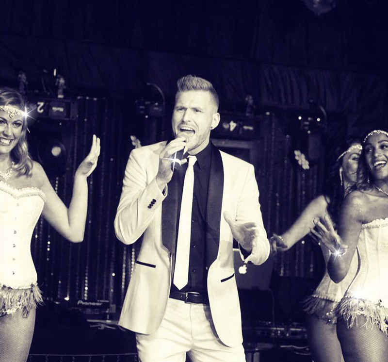 Our fantastic solo singer is also a charming and charismatic event host—so why not hire him to present and run your evening’s entertainment as well as sing?