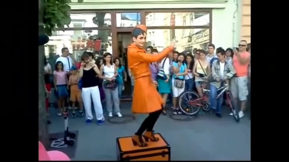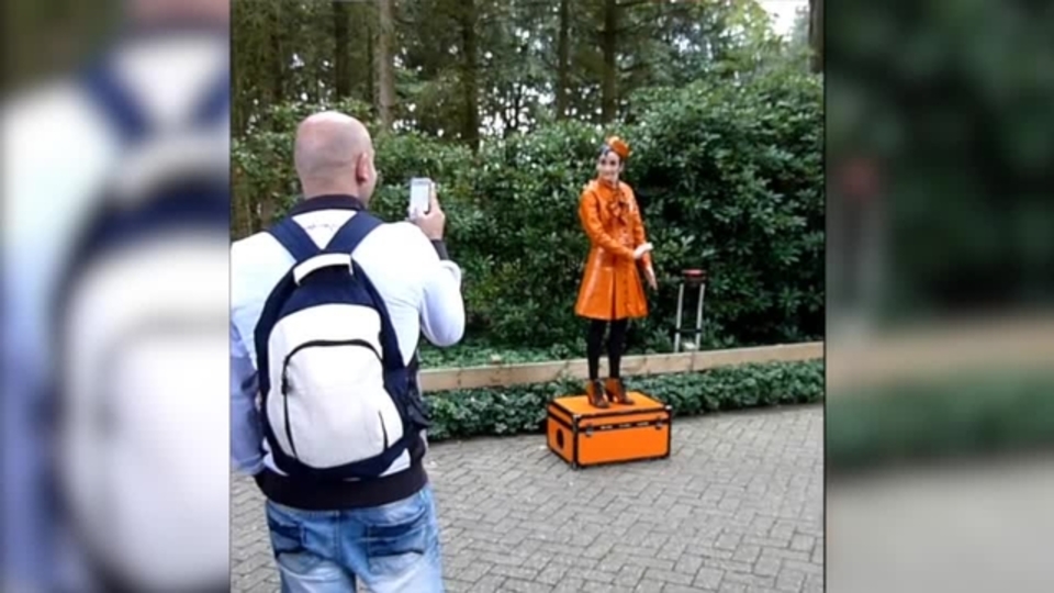 The living statue is a very cheeky and fun character that loves engaging with the public. The Orange Hostess Living Statue moves very slowly and uses highly animated facial expressions, reminiscent of a mime artist, to convey her feelings. She often engages in playful mischief with innocent bystanders.