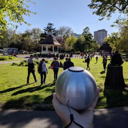 The spheres will be distributed in different areas, guiding people to a location with sounds indicating if they're heading in the right direction.