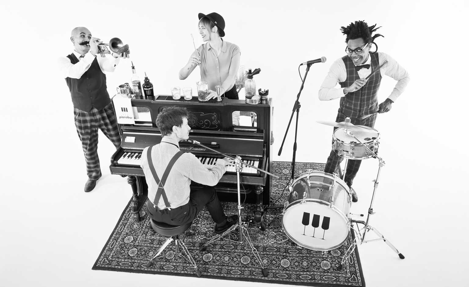 The electric piano bar offers a DJ set that includes live piano, vocals, and a horn section, all accompanied by a steady flow of cocktails and sounds from the jazz and swing era mixed with a modern twist. Both the classic and electric versions are fully self-contained and come with an extensive cocktail menu, allowing you to create your drink selection ahead of your event.