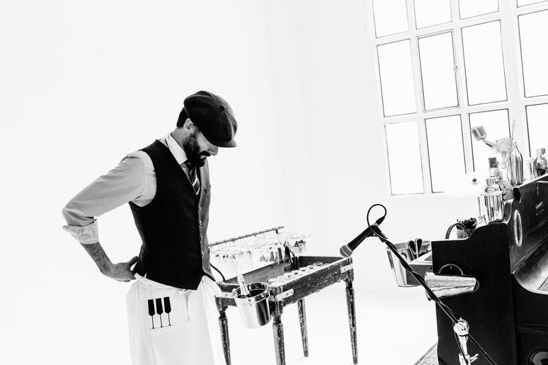 Positioned in the center of your venue, our musicians play a varied 50s rock 'n' roll, swing, and blues repertoire and serve up delicious cocktails and drinks. Always dressed for the occasion, our artists and bartenders bring a vintage touch to your party, making your event memorable with their original live music and drinks project.